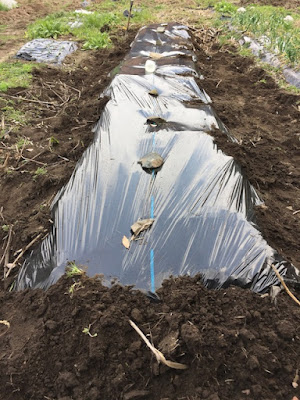 ここの畝にもマルチを掛けたのだが、今回はまだ穴を開けていない。