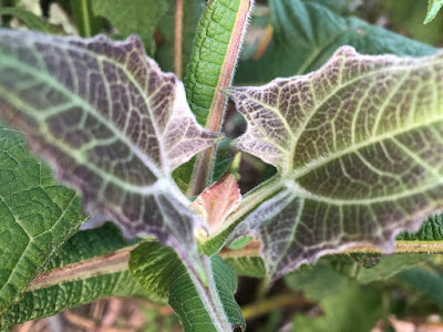 | こちらは、この時期のヤーコンのてっぺん。 新しく出ている葉がきれい。 |