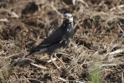 | こちらのムクドリが捕まえたのはミミズだろうか? |