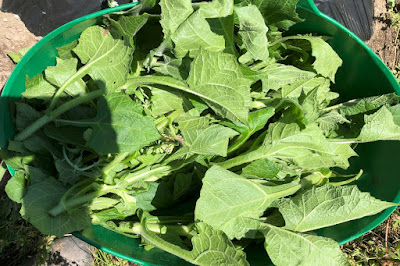 そこで、今日はこんな間引いたヤーコンの苗の先端部分を使ってお茶作りをした。