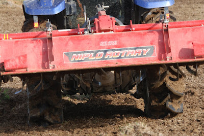 菜園の前の田んぼでは、今日は田植え前の準備で耕運機が入っていた。