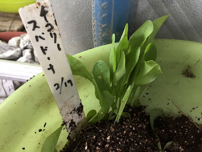 今日はこの『スパドーナ』の小さな苗を畝に移植した。