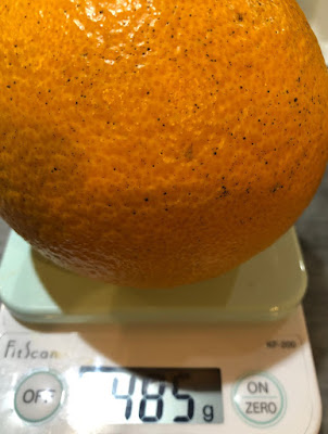 | 2g差で2番目に甘んじた八朔。 八朔の大きさは10.2~10.7cmが3L。 この2個は3Lサイズだ。 |