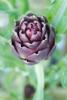 | こちらは何かの花に見えるが、少し開き始めたアーティチョークの蕾だ。 これは“ROMANO”という品種だが、まだ苗も小さいので蕾も小さい。 この3倍くらいの蕾が出来たら、食べてみたいと思っている。 |