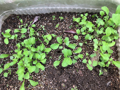 | ルッコラの方は、種もたくさんあるし、植え直しもできるので、生着率は気にしていない。 |