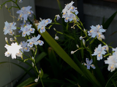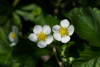 暖かくなって、菜園の側では、ワイルドストロベリーやシャガが勢力を伸ばし、いっぱい花を付けている。