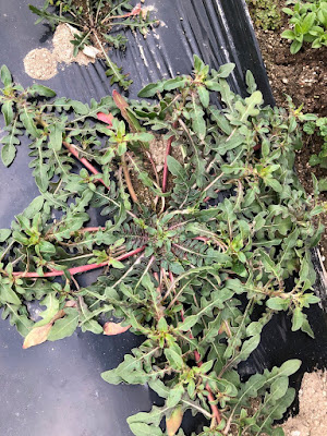 下の畝にはルッコラと同じく9月に種を蒔いたものを移植した苗と、自然発生した苗を移植したものが混在している。