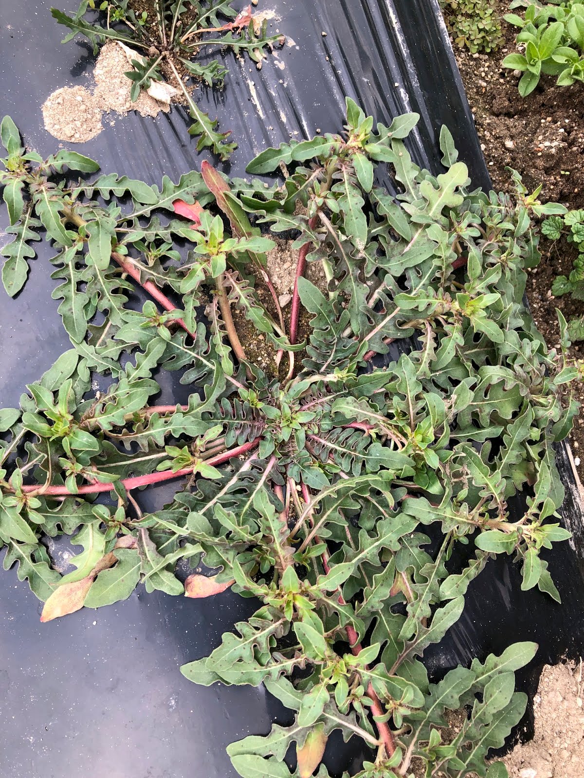 | ワイルドルッコラと思って畝に移植した雑草は当然すべて抜き取った。 もしかしたら、食べれる雑草なのかもしれないが。 |