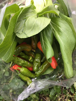| チンゲンサイは順調に収穫できている。 シシトウの最後の収穫は、赤く色付いたものも収穫してみたのだが食べれるかな? |