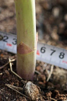 そして、こちらは、昨年12月土嚢袋のアスパラを畑に移植したもの。