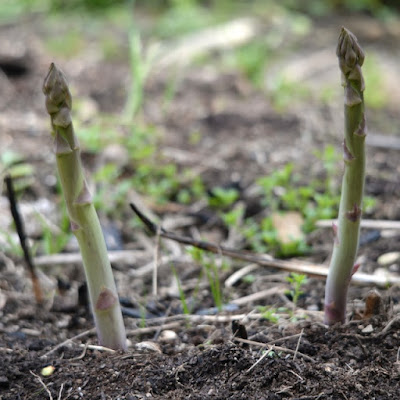 今出てきた小さな苗も、うまく育てて、3年後くらいに太いアスパラを、たらふく食べてみたいものだ。