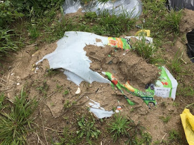 | 土嚢袋から、畑に移植したアスパラ。 今年3年目になる。 食べれる太さのものが顔を出していた。 |