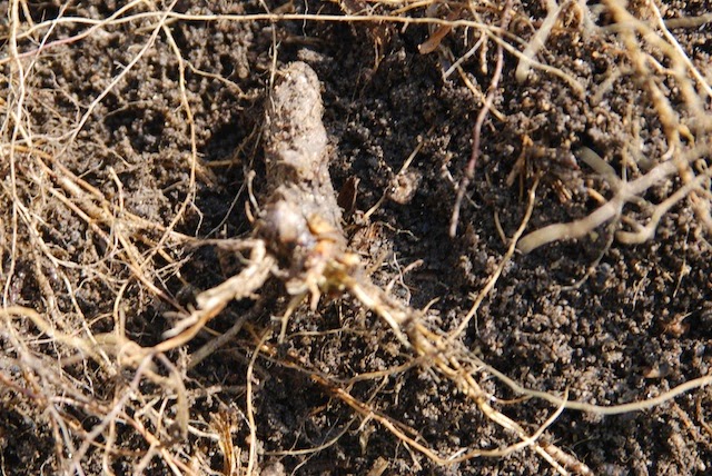 | この写真の感じから、茎や根はかなり生き残っていると判断した。 |