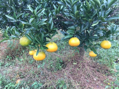 高い所にある伊予柑は、まだ色づいていないものが多いので、収穫適期は1ヶ月後くらいだろうか?