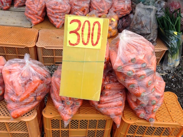 コンテナ半分近くありそうなニンジンの袋が300円。