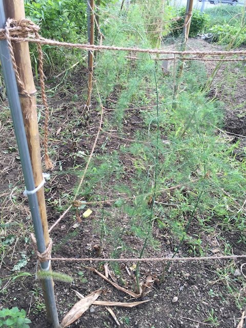 ここのアスパラが弱ったのは、収穫し過ぎが原因だろうか?