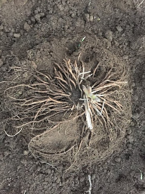 | 1個の土嚢袋から苗は6本採取できた。 根を広げ、茎部分が深く埋まり過ぎないように、根の上に土を掛けておいた。 |