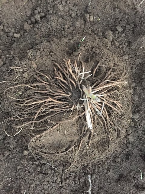 | この頃までは出て来た芽を全て収穫していたので、ほとんど茎葉が見えない。 |