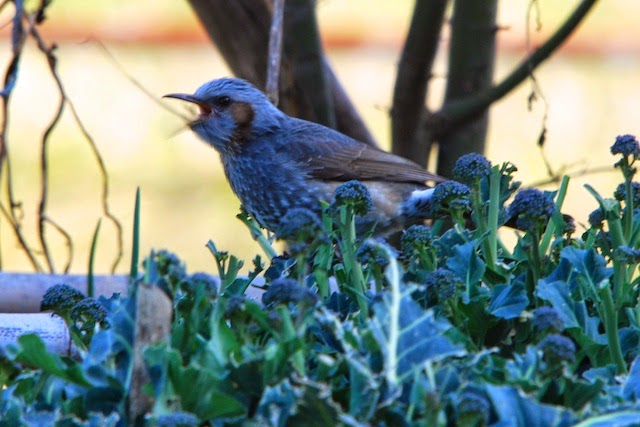 ブロッコリーのところに遊びにきたヒヨドリ。
