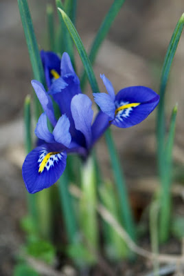 | 花壇ではミニアイリスが綺麗な花を咲かせている。 |