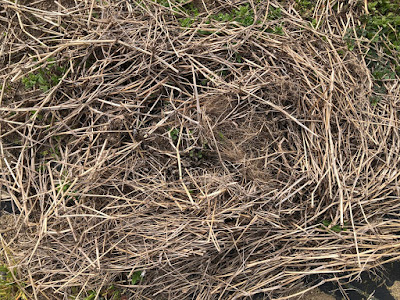 | 多くの苗は雑草マルチに囲まれて冬越ししている。 |