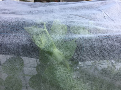| 薄い不織布なので、苗に必要な光は十分十分当たっているようだ。 掛けているのは100円の不織布2枚だが、十分役に立っている。 |