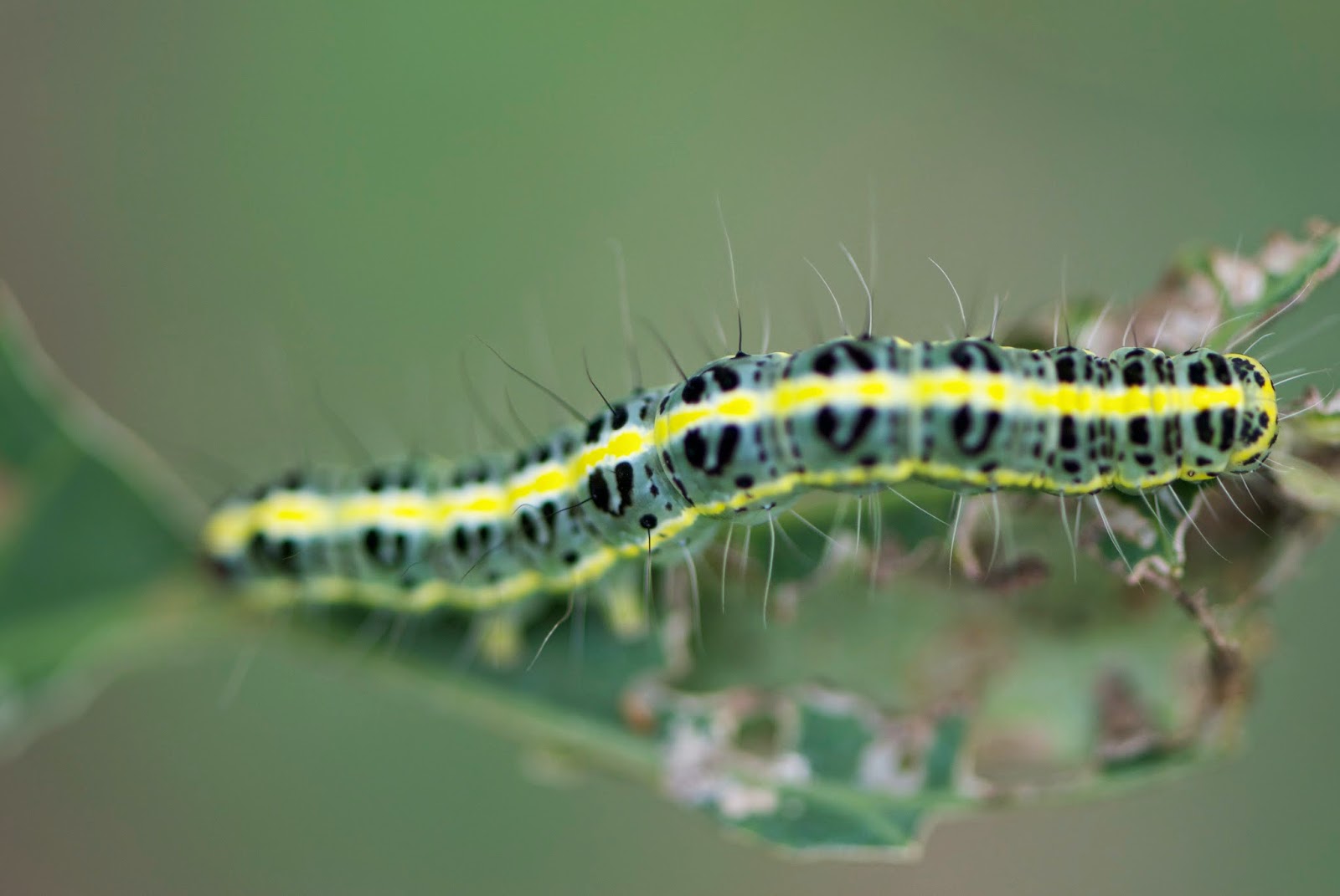 ハスモンヨトウの幼虫は7月頃から現れて、フタトガリコヤガの幼虫は入れ替わるように9月に現れた。