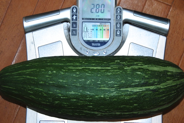 「大きい!」と感激したのだが、ネットで調べた長カボチャのサイズは40〜60cm。