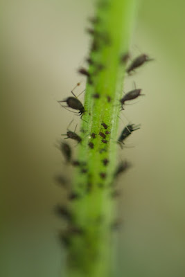 よく見ると、あちらこちらにアブラムシがたくさん付き始めた。