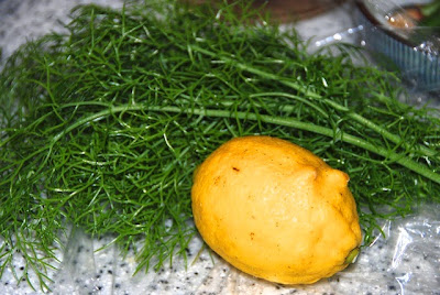 | レモン1個をスライスして、今日採ってきたフェンネルを全てティーポットに入れた。 後は熱いお湯を注いで出来上がりだ。 |