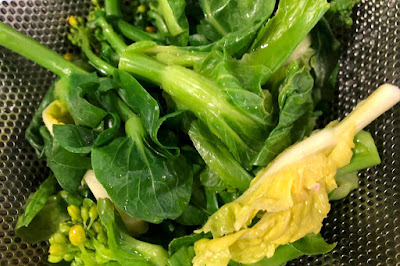 この時期の湯搔いた花芽はどんな食事にも合うシンプルな食材だ。