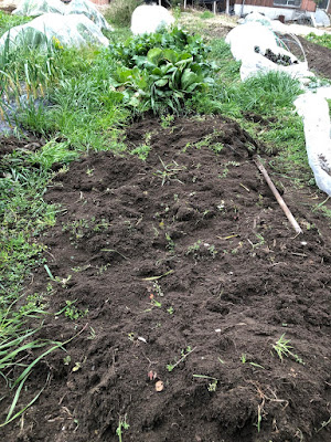 | ここが予定外の芋が出てきた、収穫をかなり前に終えていた畝。 確かに小さな苗を育てていた畝だが、掘り残しの苗があったのだろう。 |