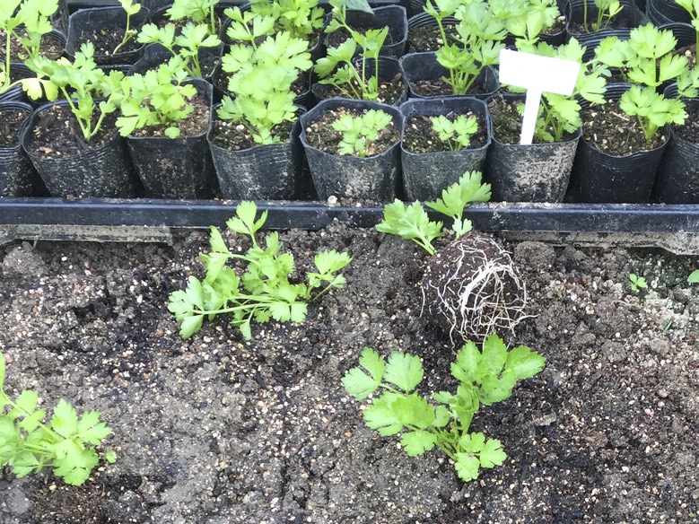 昨年5月初めには紙ポットの狭いスペースで育つセロリの苗が窮屈そうに見えた。