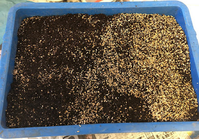 で、例年のように大きめの箱の中にミミズ堆肥とバーミキュライトを入れて、その中に種芋を置いてみた。