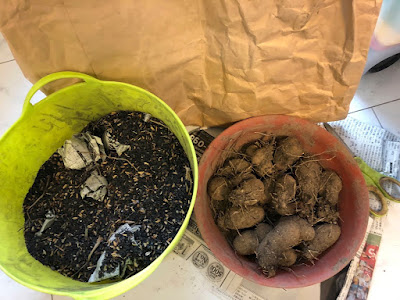 | 今年は焼いた籾殻の中でも100&近い保存率を期待している。 ただ、手間に関しては籾殻の方も新聞紙で包んだので変わらなくなった。 一応、種芋保存ではリスクを分散するように心がけよう。 |