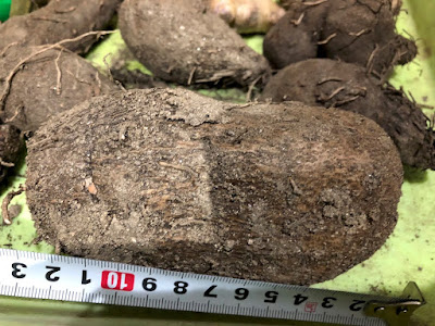 今年は20cm超えの芋の収穫が一つの目標なので、最終収穫の時期は今残している苗の茎葉が枯れるころということで、今月の終わりか12月に入ってからになりそうだ。