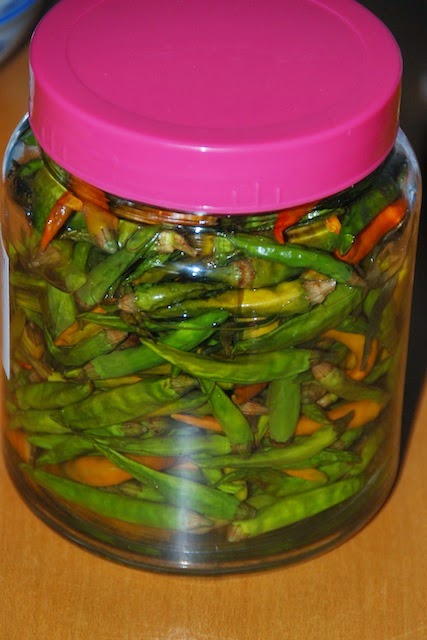 大方の収穫が終わり先日撤収したトウガラシの苗に、まだ緑色をしたトウガラシがシワシワの状態でたくさん付いていた。