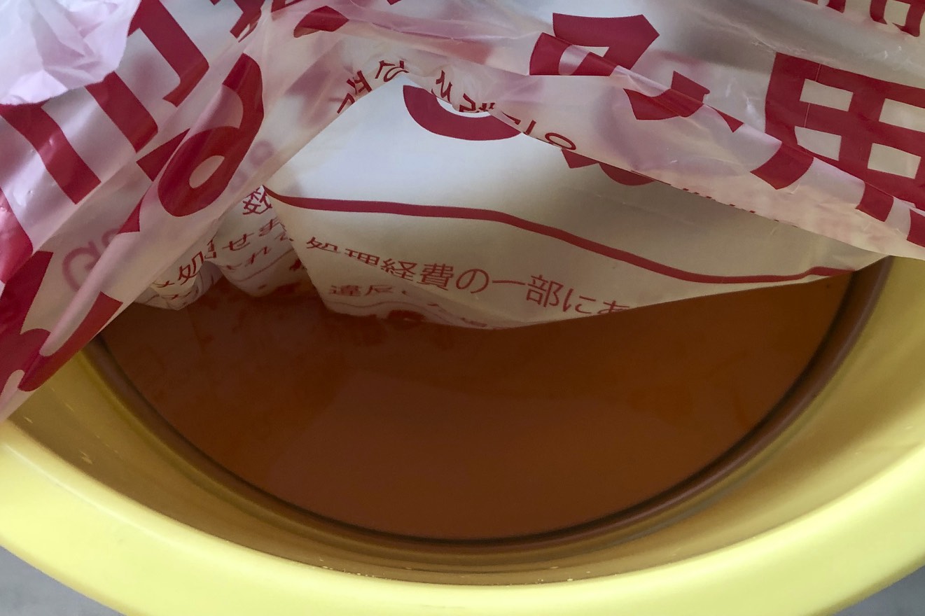 | 中敷蓋の下には梅酢にしっかり浸かった小梅があるはずだ。 とういうことで、今年の小梅漬けはひとまず成功だ。 味の方は小梅の梅干しを作った後に最終確認することになる。 |