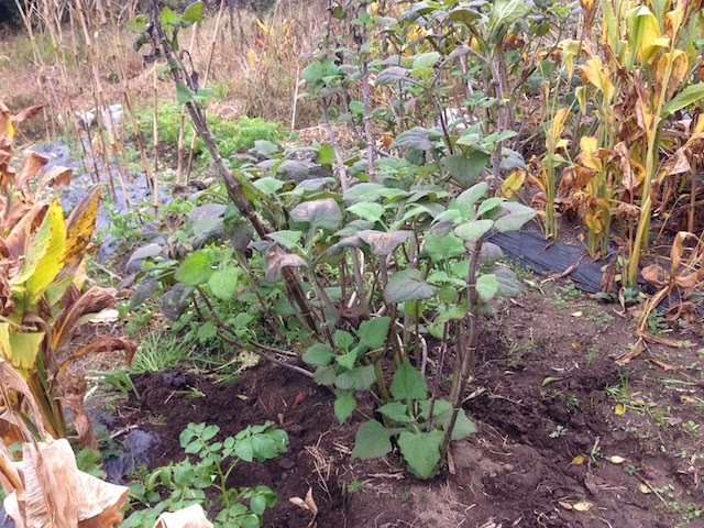 夏前、カボチャの元気な蔓に押され気味でちょっと心配したが、ヤーコンは元々非常に生命力がある野菜なのだ。