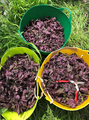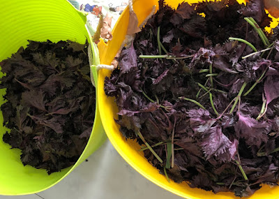 そして第2ステップは紫蘇の収穫と、塩もみ、そしてそんな紫蘇を梅漬けに加えるところまでだ。
