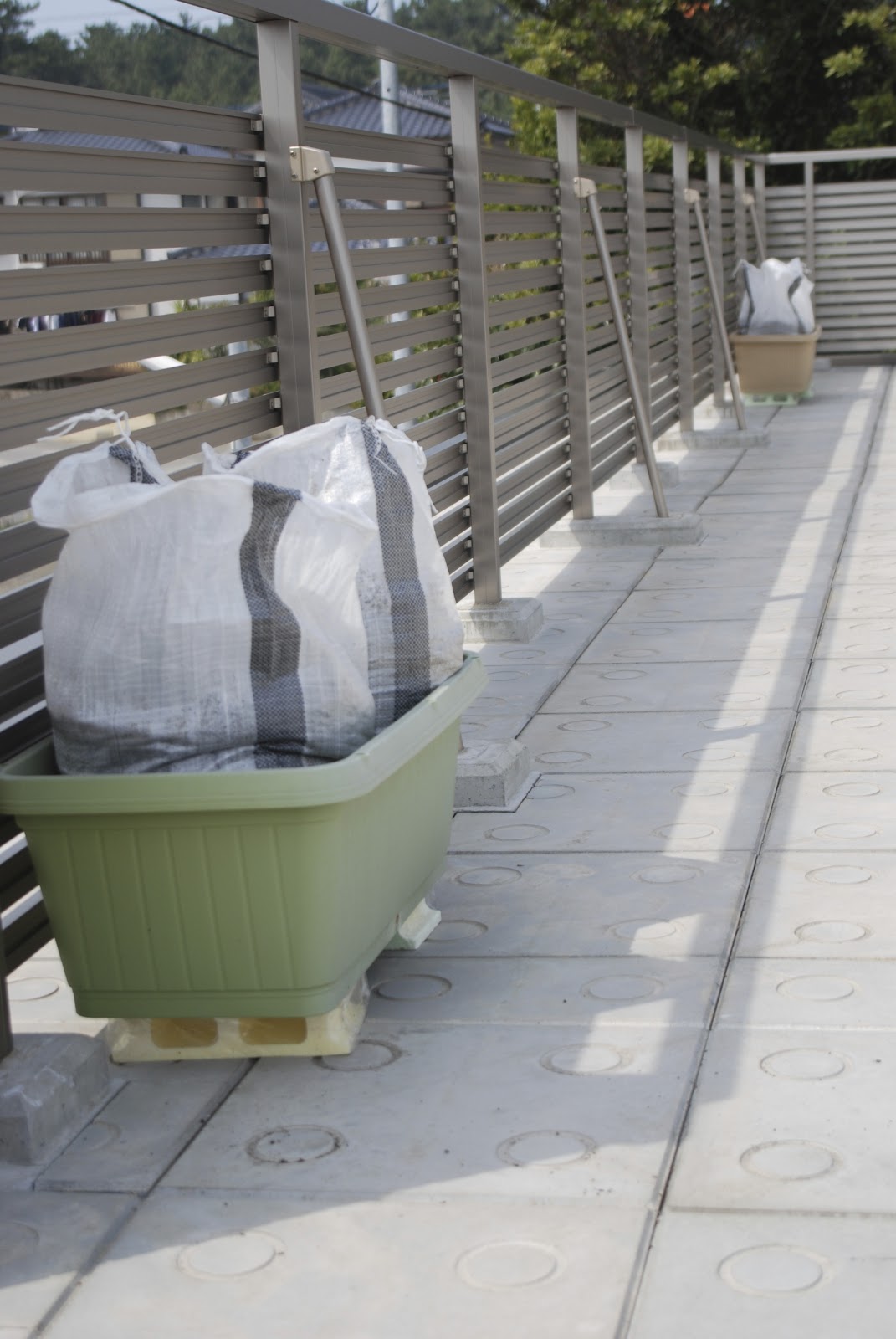 そしてこちらはインゲン(モロッコ)用土嚢袋を置く予定のプランター。