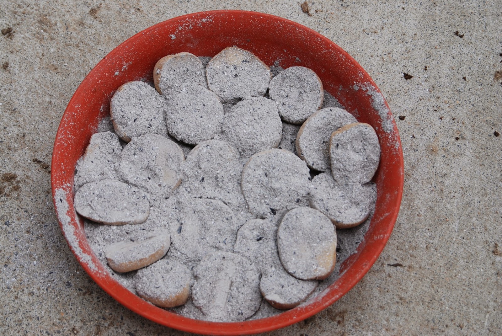 | 木灰を付けると雑菌が付きにくく腐れにくいとのことなのだが、真相は分からない。 |