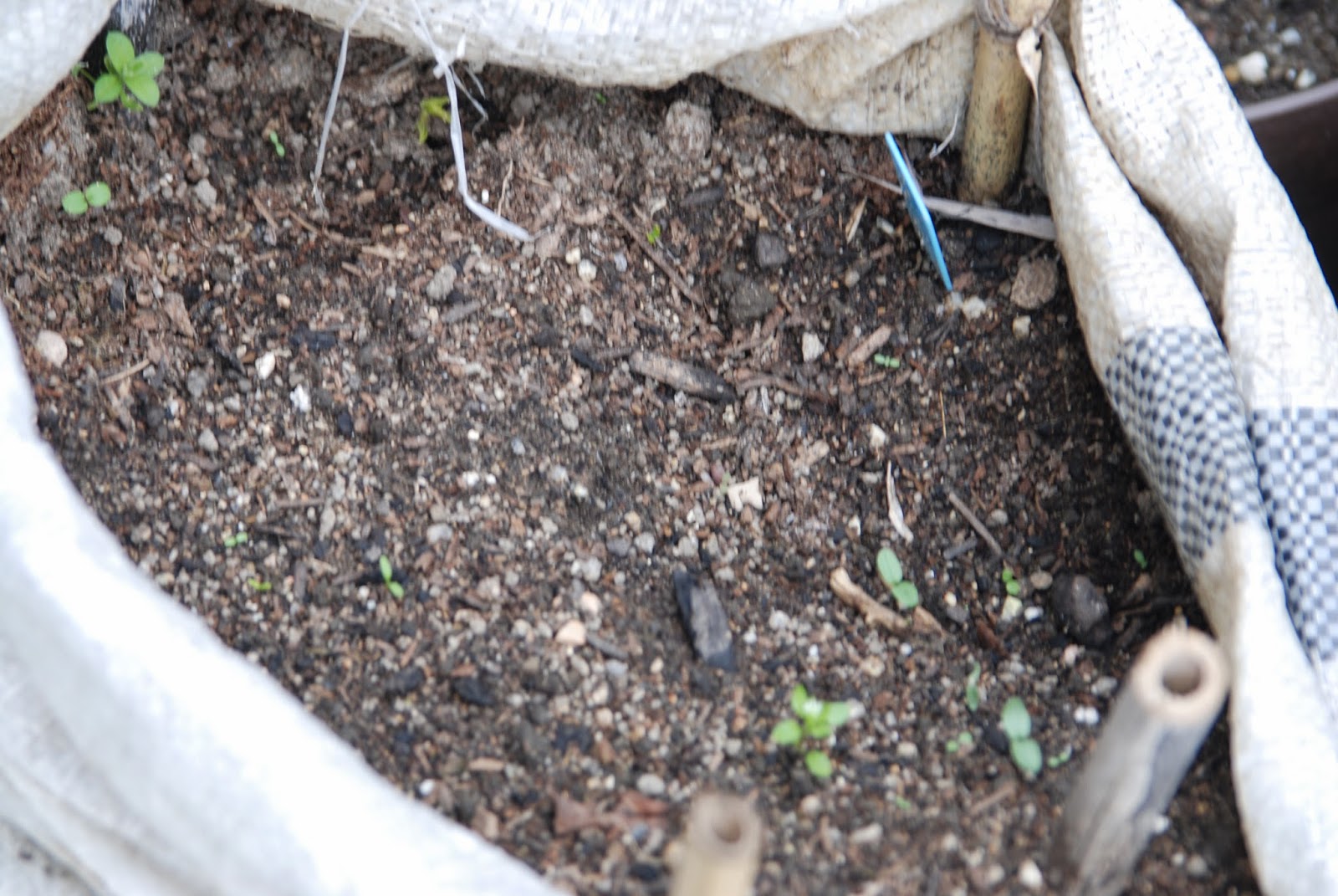 ところで、最近土嚢袋での葉っぱ野菜の収穫が終わって、土嚢袋が空いてきた。