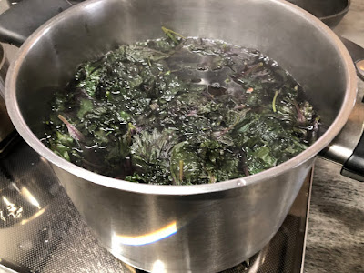 | 大きな鍋で水を沸騰させ、紫蘇を入れていった。 |