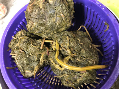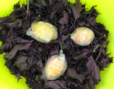少しでも濃厚な紫蘇ジュースを作ろうと、こんな紫蘇も搾り上げ、3個の紫蘇玉ができた。