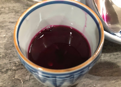 3分も経たないうちに、紫蘇の色は濃ゆいみだり色に変わっていった。