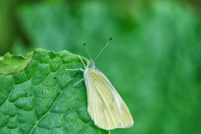 | 冬瓜の葉っぱに止まっていたモンシロチョウ。 |
