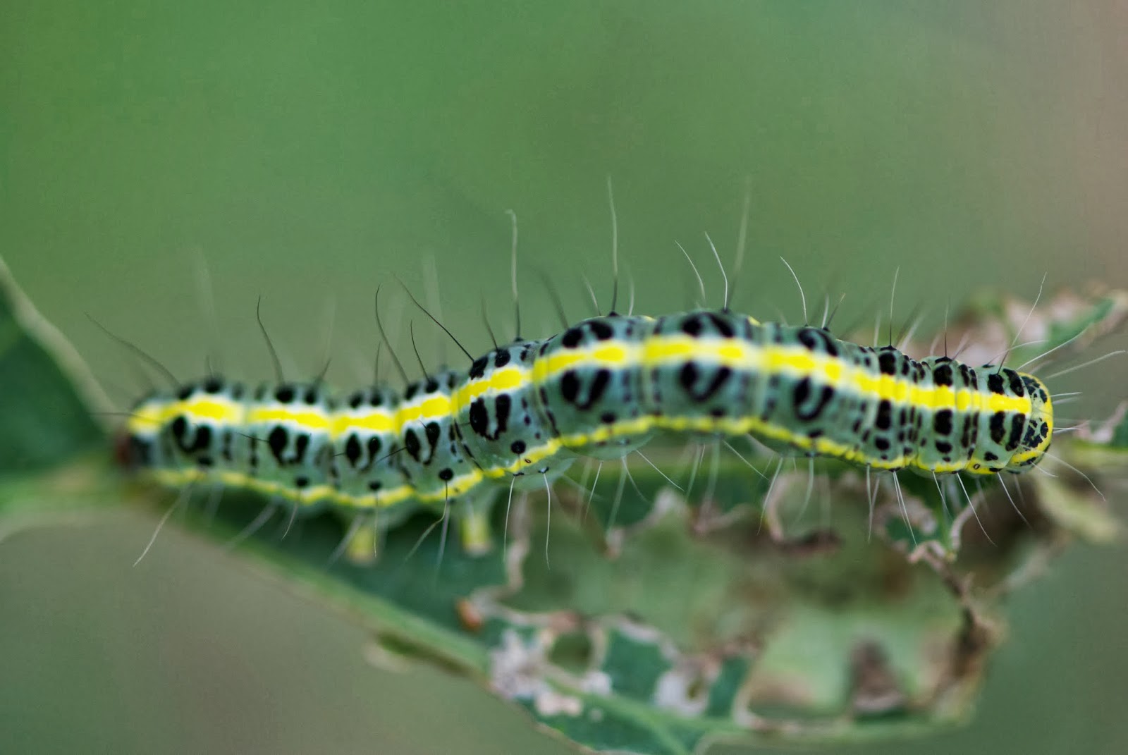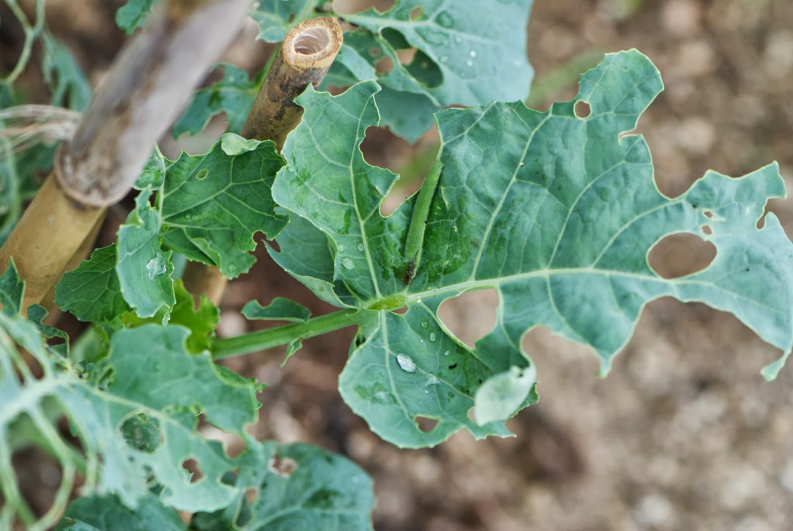 これらの苗がひどく青虫にやられはじめている。