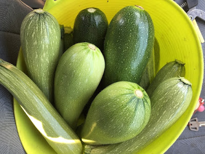 我が家では、濃い緑、細い黄緑、若干先太りの白、そしてUFO型などのズッキーニを育てていた。