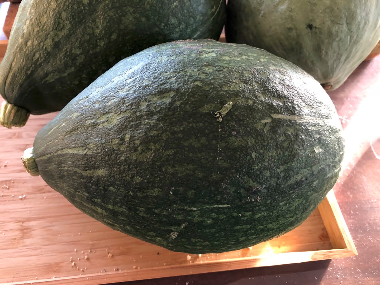 長くて太いカボチャは今年初お目見えした。